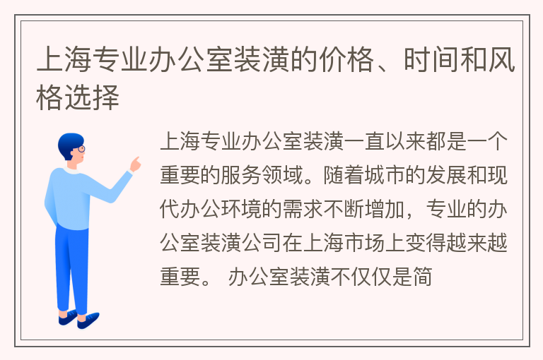 上海专业办公室装潢一直以来都是一个重要的服务领域。随着城市的发展和现代办公环境的需求不断增加,专业的办公室装潢公司在上海市场上变得越来越重要。 办公室装潢不仅仅是简......【点击详情】