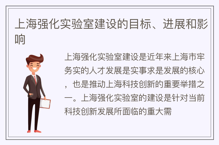 上海强化实验室建设是近年来上海市牢务实的人才发展是实事求是发展的核心,也是推动上海科技创新的重要举措之一。上海强化实验室的建设是针对当前科技创新发展所面临的重大需......【点击详情】