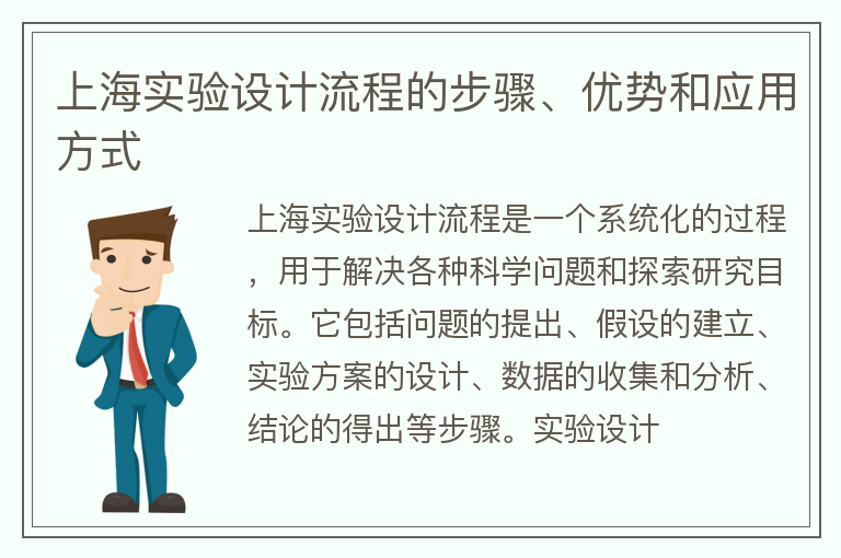 上海实验设计流程的步骤、优势和应用方式