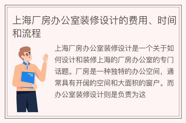 上海厂房办公室装修设计的费用、时间和流程