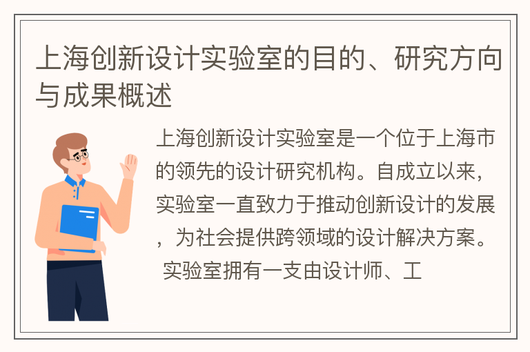 上海创新设计实验室的目的、研究方向与成果概述