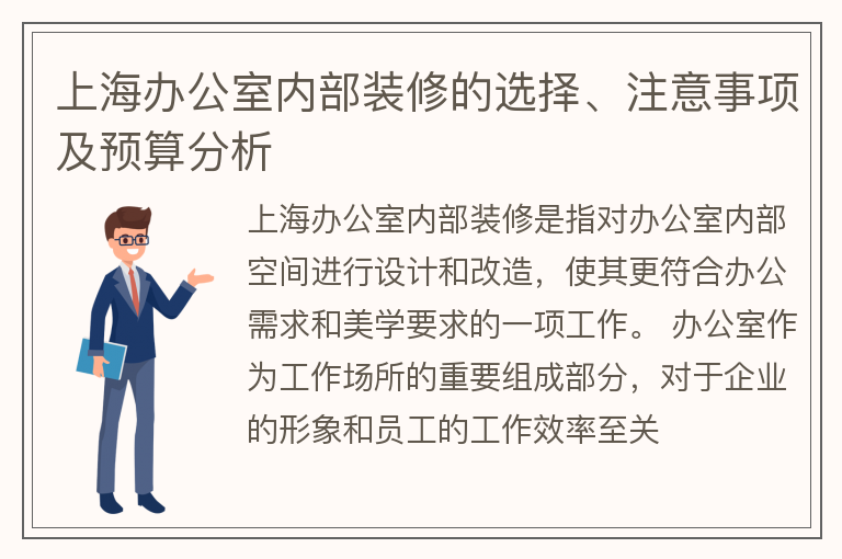 上海办公室内部装修的选择、注意事项及预算分析