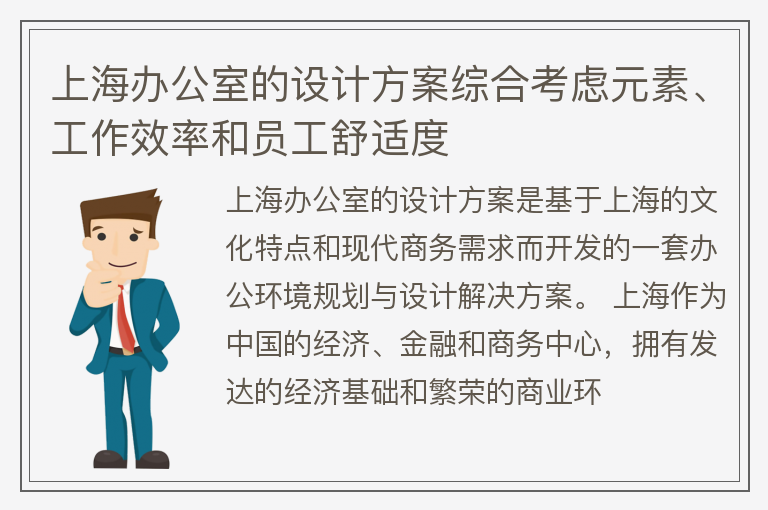 上海办公室的设计方案综合考虑元素、工作效率和员工舒适度
