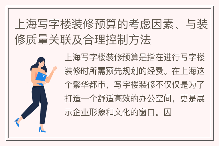 上海写字楼装修预算的考虑因素、与装修质量关联及合理控制方法