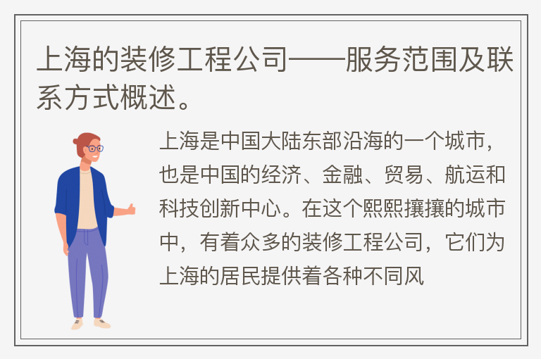上海的装修工程公司——服务范围及联系方式概述。