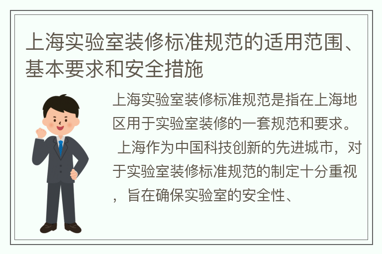 上海实验室装修标准规范的适用范围、基本要求和安全措施