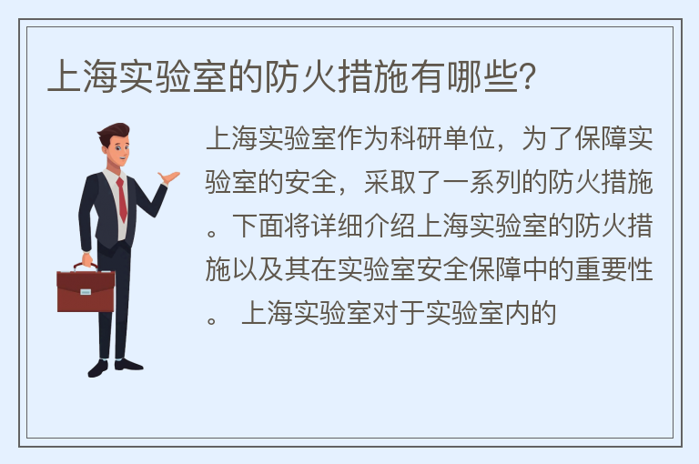 上海实验室作为科研单位,为了保障实验室的安全,采取了一系列的防火措施。下面将详细介绍上海实验室的防火措施以及其在实验室安全保障中的重要性。 上海实验室对于实验室内的......【点击详情】