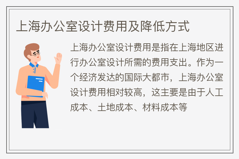 上海办公室设计费用是指在上海地区进行办公室设计所需的费用支出。作为一个经济发达的国际大都市,上海办公室设计费用相对较高,这主要是由于人工成本、土地成本、材料成本等......【点击详情】