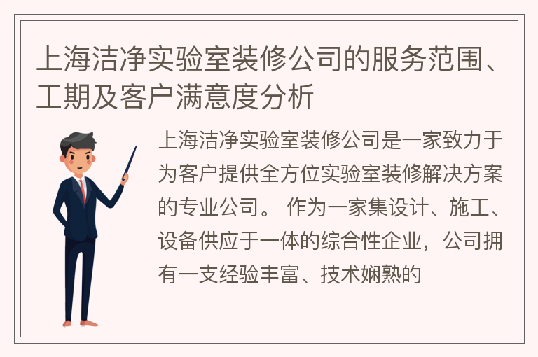 上海洁净实验室装修公司的服务范围、工期及客户满意度分析