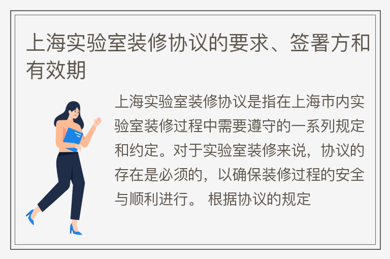 上海实验室装修协议是指在上海市内实验室装修过程中需要遵守的一系列规定和约定。对于实验室装修来说,协议的存在是必须的,以确保装修过程的安全与顺利进行。 根据协议的规定......【点击详情】