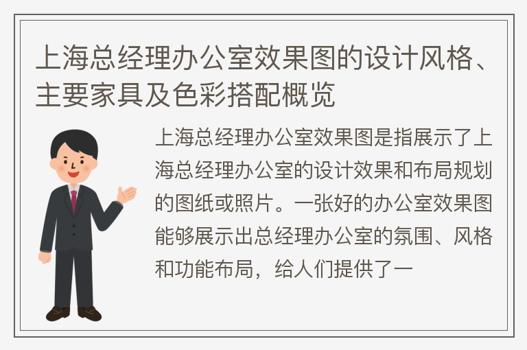 上海总经理办公室效果图的设计风格、主要家具及色彩搭配概览