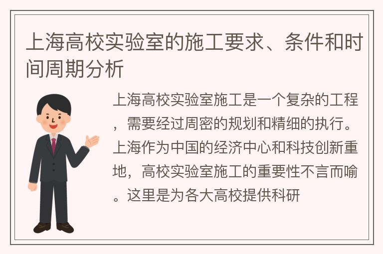 上海高校实验室的施工要求、条件和时间周期分析