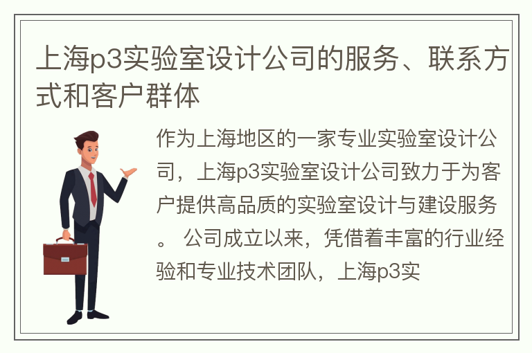 上海p3实验室设计公司的服务、联系方式和客户群体