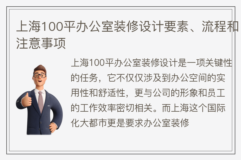 上海100平办公室装修设计要素、流程和注意事项