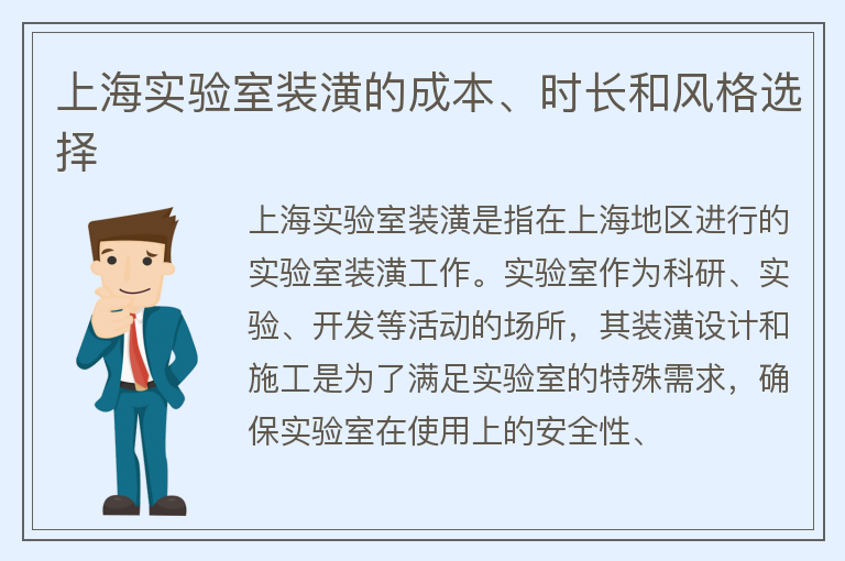 上海实验室装潢的成本、时长和风格选择