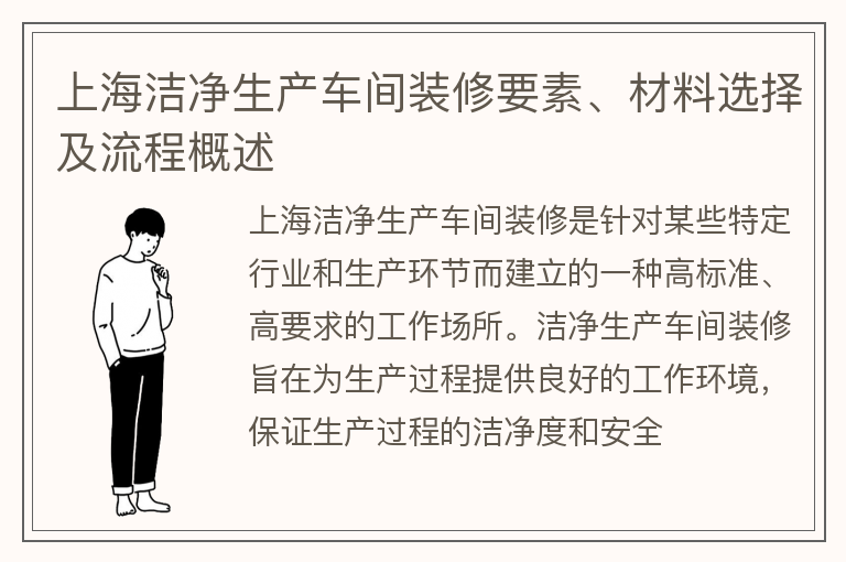 上海洁净生产车间装修要素、材料选择及流程概述