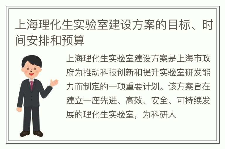 上海理化生实验室建设方案的目标、时间安排和预算