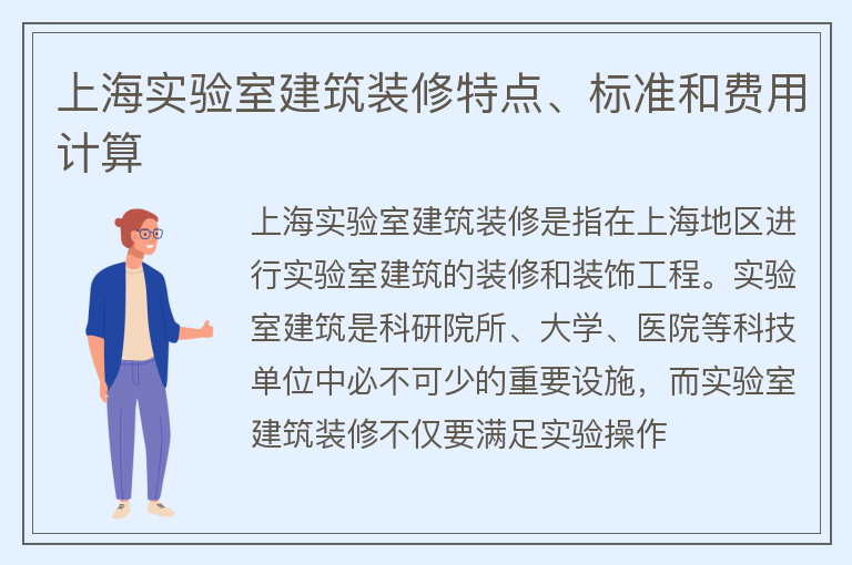 上海实验室建筑装修特点、标准和费用计算