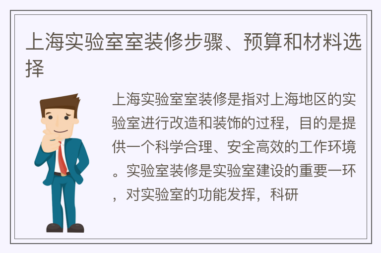 上海实验室室装修步骤、预算和材料选择
