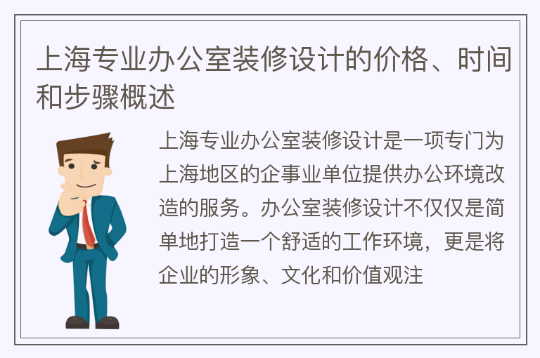 上海专业办公室装修设计的价格、时间和步骤概述