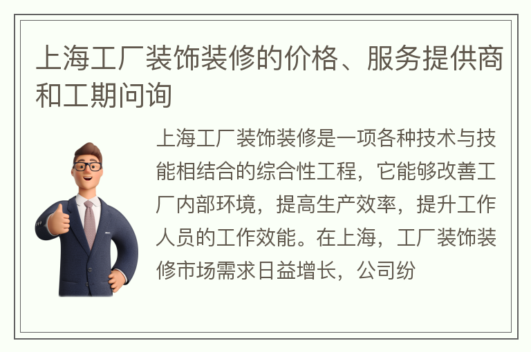 上海工厂装饰装修的价格、服务提供商和工期问询