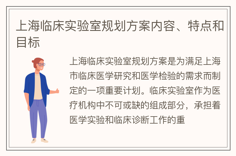 上海临床实验室规划方案内容、特点和目标