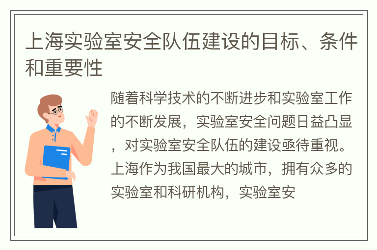 上海实验室安全队伍建设的目标、条件和重要性