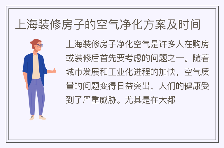 上海装修房子净化空气是许多人在购房或装修后首先要考虑的问题之一。随着城市发展和工业化进程的加快,空气质量的问题变得日益突出,人们的健康受到了严重威胁。尤其是在大都......【点击详情】