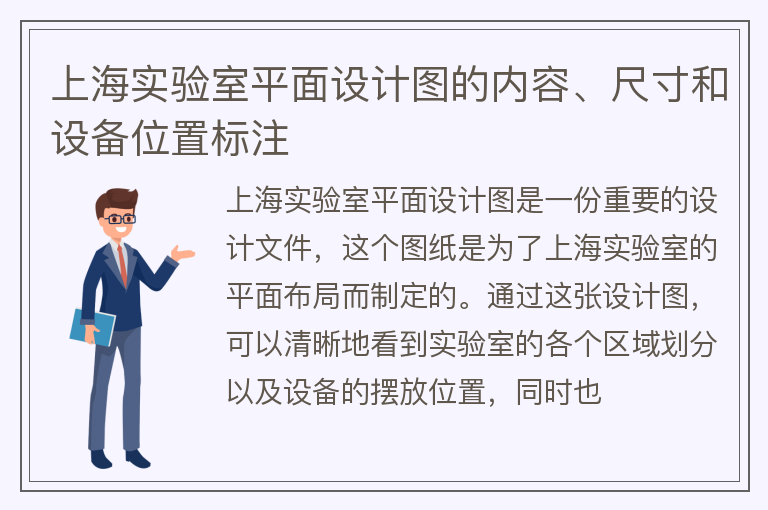 上海实验室平面设计图是一份重要的设计文件,这个图纸是为了上海实验室的平面布局而制定的。通过这张设计图,可以清晰地看到实验室的各个区域划分以及设备的摆放位置,同时也......【点击详情】
