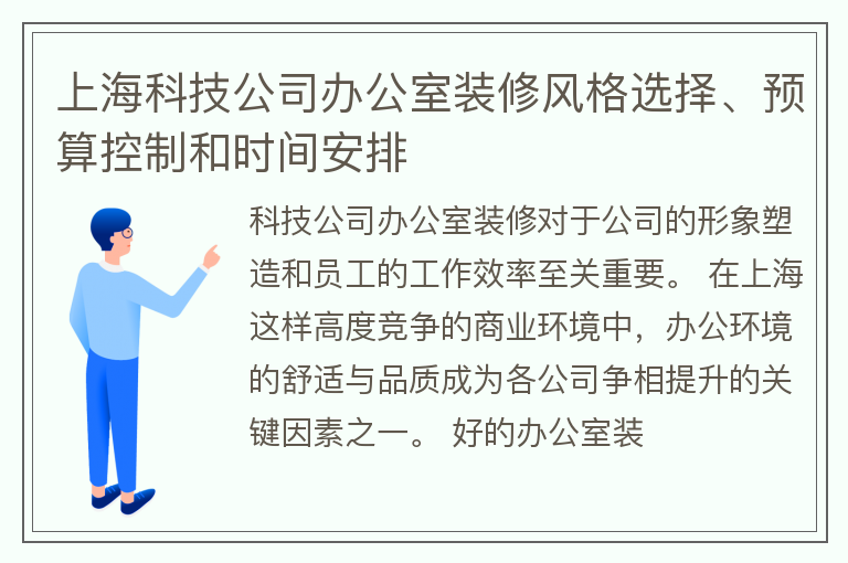 上海科技公司办公室装修风格选择、预算控制和时间安排