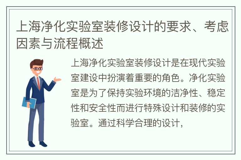 上海净化实验室装修设计的要求、考虑因素与流程概述