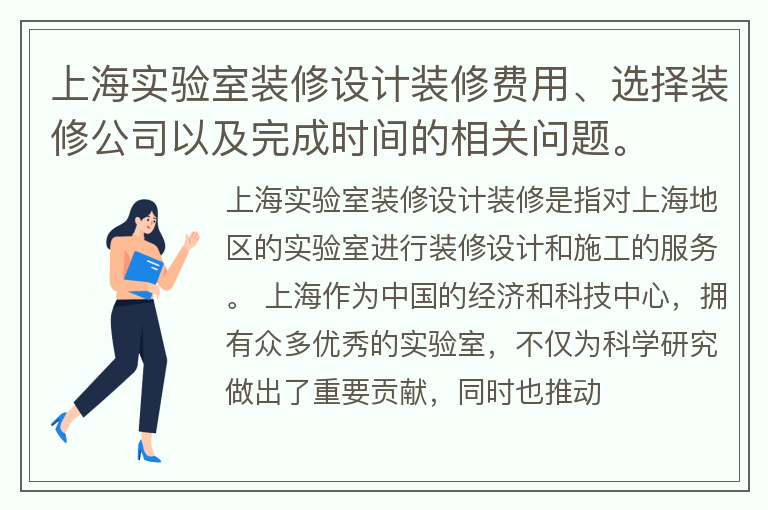 上海实验室装修设计装修费用、选择装修公司以及完成时间的相关问题。