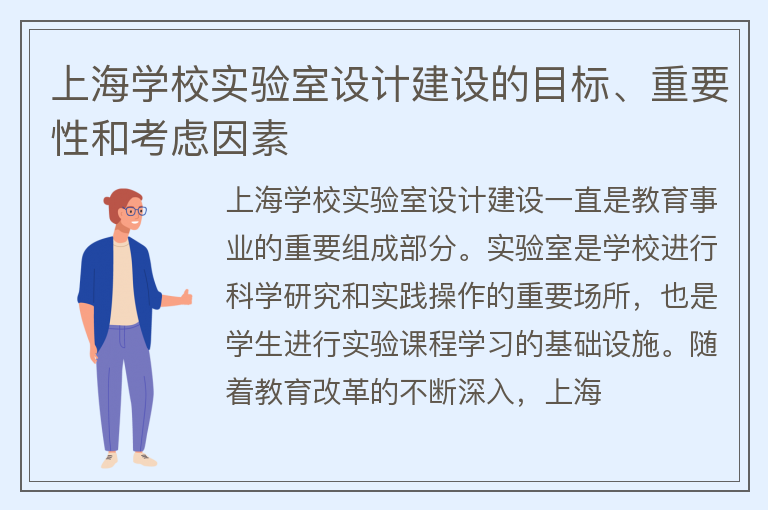 上海学校实验室设计建设的目标、重要性和考虑因素