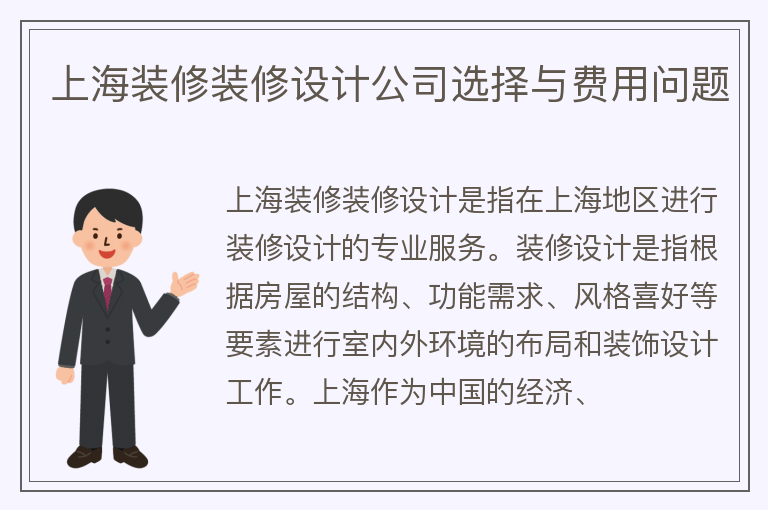 上海装修装修设计公司选择与费用问题