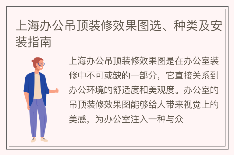 上海办公吊顶装修效果图是在办公室装修中不可或缺的一部分,它直接关系到办公环境的舒适度和美观度。办公室的吊顶装修效果图能够给人带来视觉上的美感,为办公室注入一种与众......【点击详情】