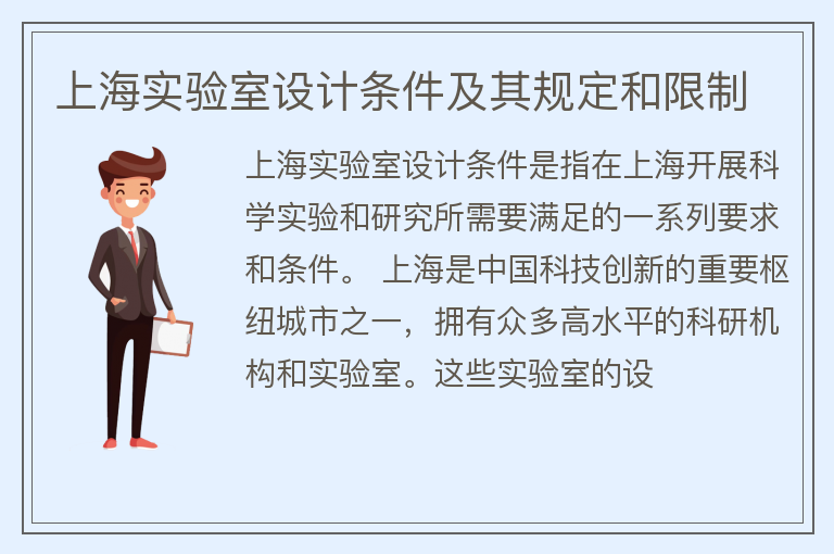 上海实验室设计条件是指在上海开展科学实验和研究所需要满足的一系列要求和条件。 上海是中国科技创新的重要枢纽城市之一,拥有众多高水平的科研机构和实验室。这些实验室的设......【点击详情】