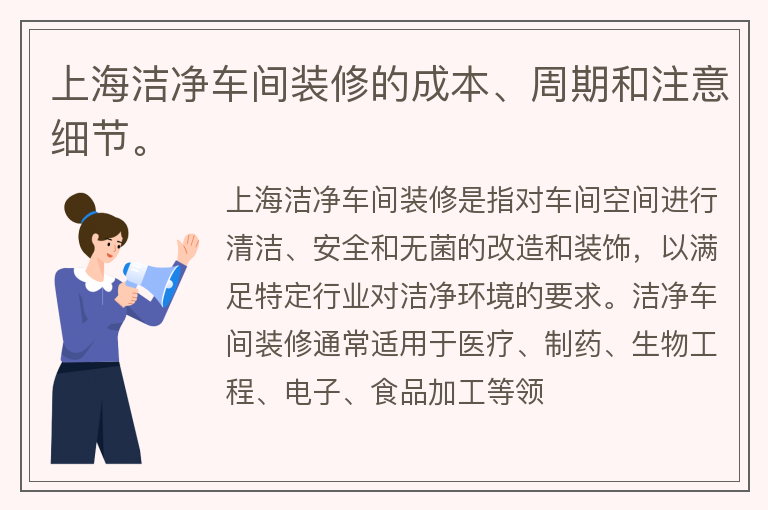 上海无尘工程装修是指在施工过程中采取一系列科学、规范的措施,以减少粉尘的产生和传播,从而创造无尘的施工环境。 上海作为我国经济发展最快、城市化程度最高的城市之一,在......【点击详情】