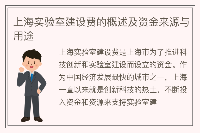 上海实验室建设费是上海市为了推进科技创新和实验室建设而设立的资金。作为中国经济发展最快的城市之一,上海一直以来就是创新科技的热土,不断投入资金和资源来支持实验室建......【点击详情】