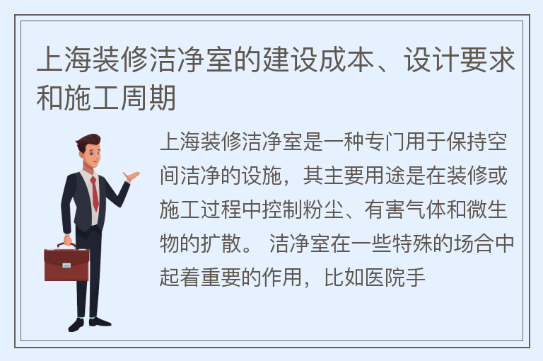 上海装修洁净室的建设成本、设计要求和施工周期
