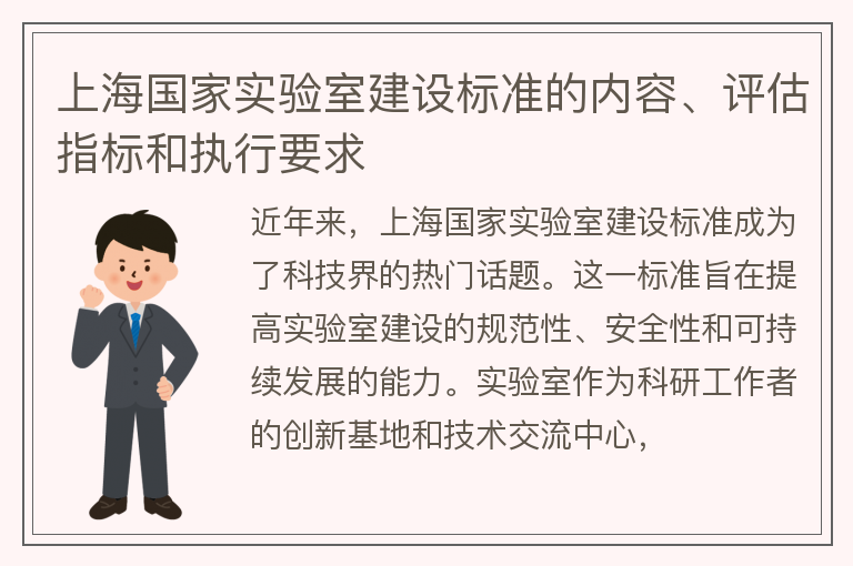 上海国家实验室建设标准的内容、评估指标和执行要求