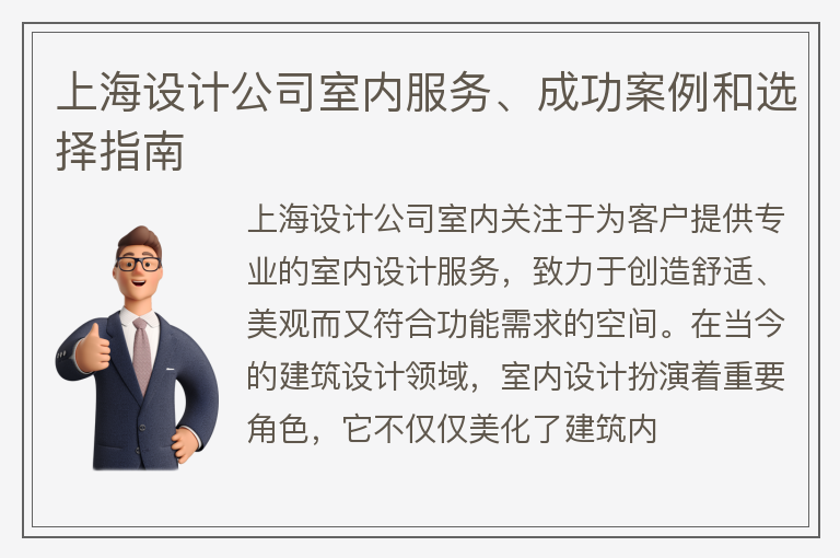 上海设计公司室内关注于为客户提供专业的室内设计服务,致力于创造舒适、美观而又符合功能需求的空间。在当今的建筑设计领域,室内设计扮演着重要角色,它不仅仅美化了建筑内......【点击详情】