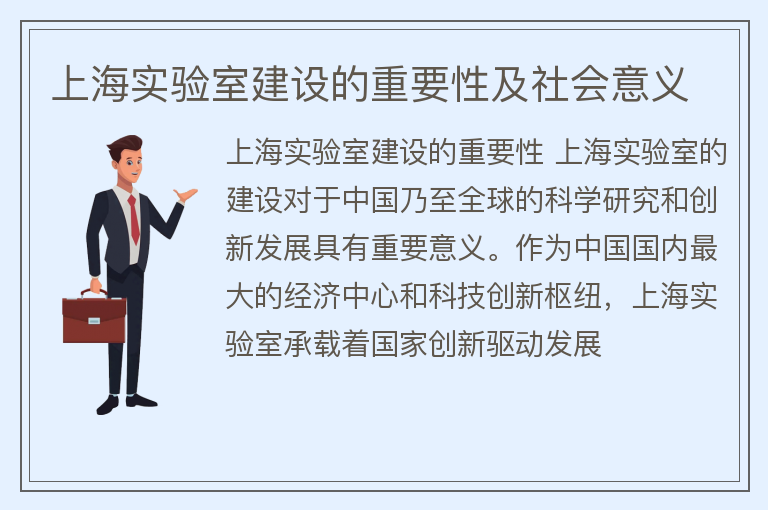 上海实验室建设的重要性 上海实验室的建设对于中国乃至全球的科学研究和创新发展具有重要意义。作为中国国内最大的经济中心和科技创新枢纽,上海实验室承载着国家创新驱动发展......【点击详情】