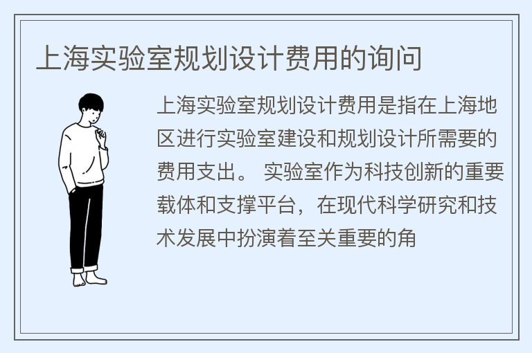 上海实验室规划设计费用是指在上海地区进行实验室建设和规划设计所需要的费用支出。 实验室作为科技创新的重要载体和支撑平台,在现代科学研究和技术发展中扮演着至关重要的角......【点击详情】