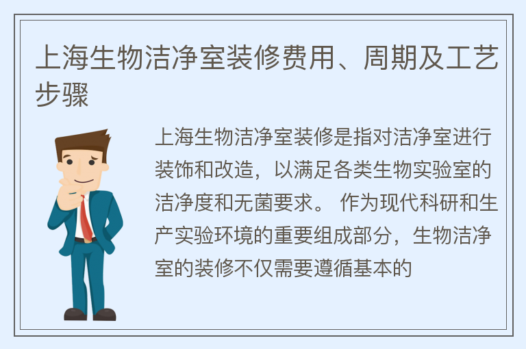 上海生物洁净室装修是指对洁净室进行装饰和改造,以满足各类生物实验室的洁净度和无菌要求。 作为现代科研和生产实验环境的重要组成部分,生物洁净室的装修不仅需要遵循基本的......【点击详情】