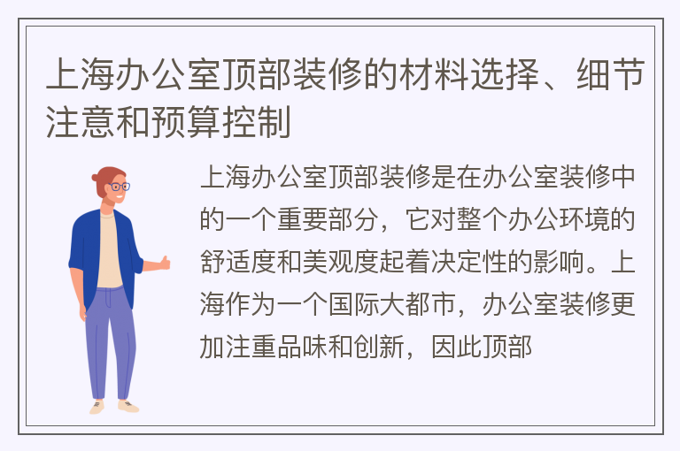 上海办公室顶部装修的材料选择、细节注意和预算控制