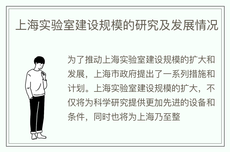 为了推动上海实验室建设规模的扩大和发展,上海市政府提出了一系列措施和计划。上海实验室建设规模的扩大,不仅将为科学研究提供更加先进的设备和条件,同时也将为上海乃至整......【点击详情】