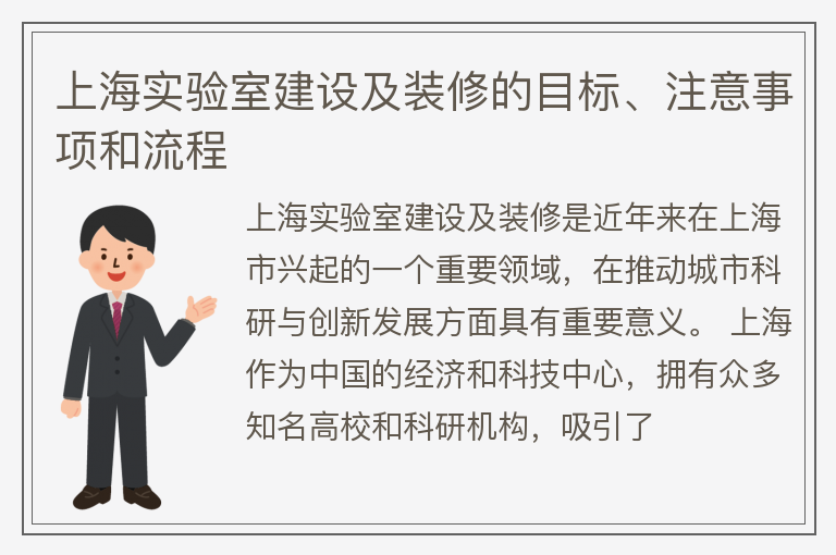 上海实验室装修玻璃是实验室装修中至关重要的一部分,它起着保护和隔离实验环境的作用,能有效阻隔外界有害物质和噪音的干扰,同时提供透明的观察窗口,使实验操作更加方便和......【点击详情】