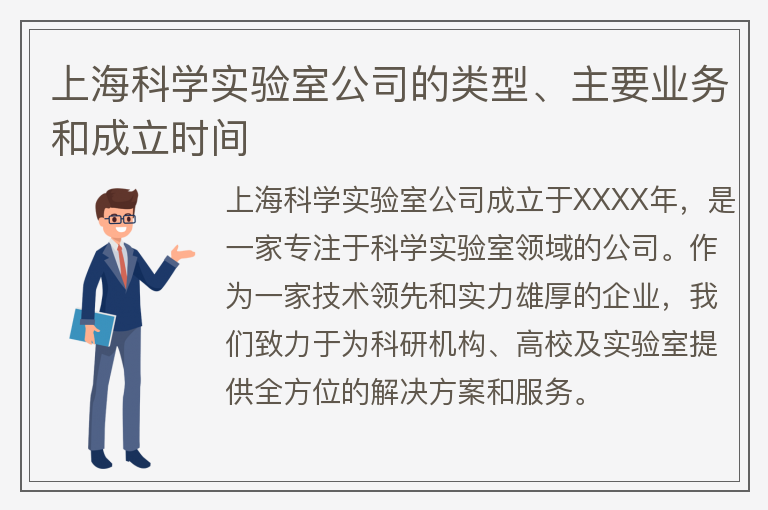 上海科学实验室公司成立于XXXX年,是一家专注于科学实验室领域的公司。作为一家技术领先和实力雄厚的企业,我们致力于为科研机构、高校及实验室提供全方位的解决方案和服务。......【点击详情】
