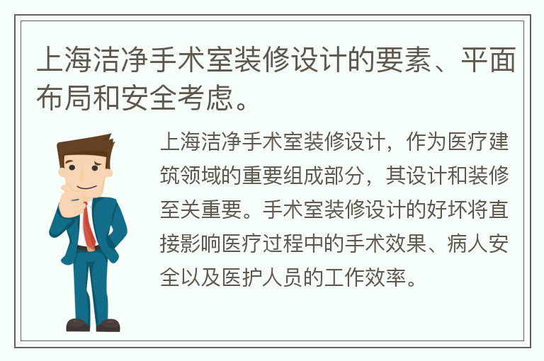 上海洁净手术室装修设计的要素、平面布局和安全考虑。