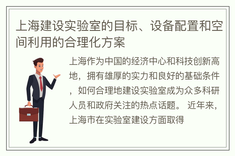 上海建设实验室的目标、设备配置和空间利用的合理化方案